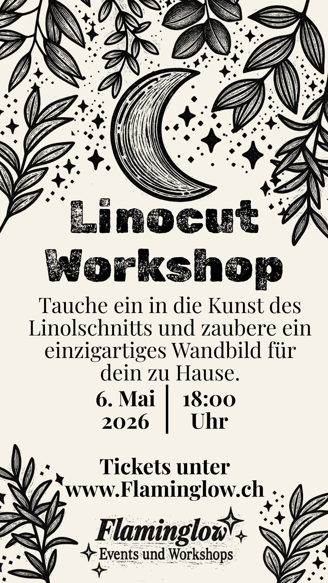Du wählst aus Vorlagen oder entwickelst dein eigenes Motiv, das anschliessend auf Linol übertragen und Schritt für Schritt geschnitzt wird. Mit Farbe und Drucktechnik bringst du dein Motiv aufs Papier und erschaffst ein einzigartiges Kunstwerk.